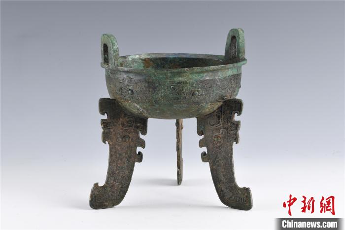 同時(shí),酒務(wù)頭墓地大墓的形制、青銅禮器組合和器型紋飾風(fēng)格等表現(xiàn)出其與商文化演進(jìn)過程的同一性與復(fù)雜性。墓地不僅出土了成套系的樂器,如鼓、鈴、鐃等,還出土了種類豐富、造型各異的青銅鼎,其中不乏一些形體較大的重器,凸顯其禮器功能。其中,子匿圓鼎表面飾獸面紋、雷紋,足根部飾獸面、凸弦紋,鼎內(nèi)壁鑄有“子匿”銘文,應(yīng)為族徽或人名。這種深腹、圜底、三足鼎的形制以及紋飾是商代晚期青銅鼎的典型樣式。