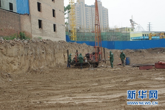 研究團(tuán)隊(duì)在三門峽盆地打鉆獲取巖芯檔案。 受訪者供圖