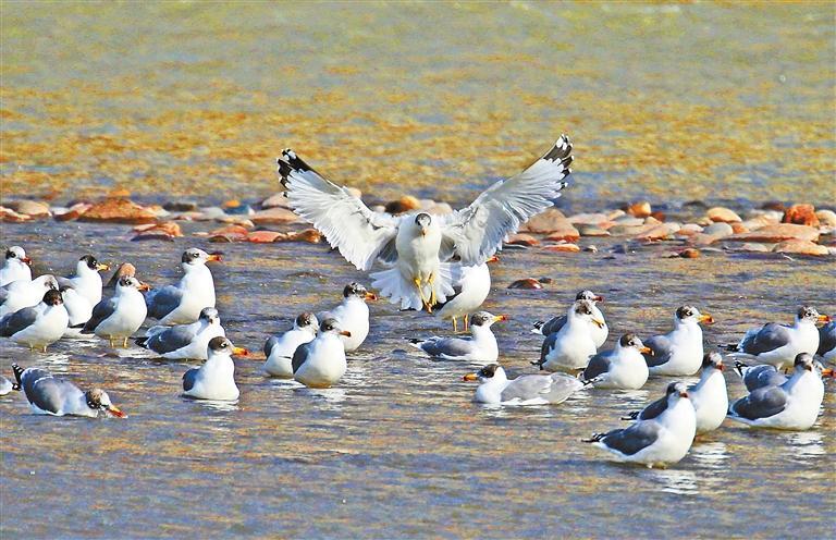 冬日的蘭州市黃河岸邊候鳥翔集,嬉戲的候鳥和流動(dòng)的河水交織成一幅美麗自然的和諧畫卷。 新甘肅·甘肅日?qǐng)?bào)記者 丁凱 田蹊