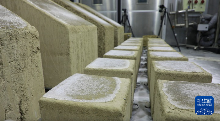這是9月11日在敦煌研究院國家古代壁畫與土遺址保護(hù)多場耦合環(huán)境模擬實(shí)驗(yàn)室冬季倉拍攝的正在試驗(yàn)中的土遺址監(jiān)測樣品。新華社記者 張智敏 攝