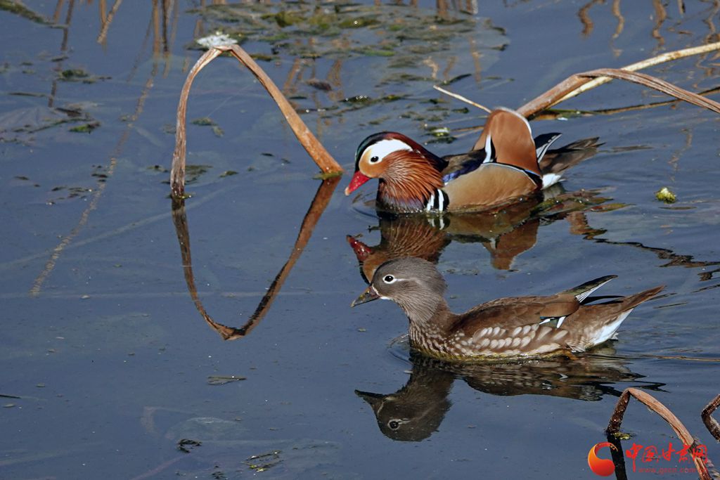 冬日的崇信縣龍澤湖,枯殘的荷葉、蓮蓬與枝干倒映水中,一株株枯荷挺著一身風(fēng)骨靜靜地佇立在湖中,鳳頭鸊鷉、鴛鴦、秋沙鴨、赤麻鴨等成群結(jié)隊的候鳥在枯荷間嬉戲,舞出了不一樣的冬韻。