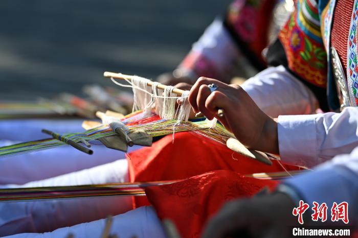 9月26日,甘肅省甘南藏族自治州舟曲縣,當(dāng)?shù)夭刈鍕D女紡織錦帶。錦帶是舟曲藏族婦女用以束腰、扎靴、攏發(fā)乃至點(diǎn)綴服飾的花帶子,艷麗多彩、圖案優(yōu)美。每逢吉慶節(jié)日,藏族婦女穿戴的華麗盛裝就需要少則五、六條,多則十幾條寬窄長(zhǎng)短相宜的錦帶來裝飾。據(jù)介紹,藏族織錦帶技藝歷史悠久,一千多年以前,古羌族和吐蕃已有了較發(fā)達(dá)的手工編織技術(shù),在艱難的生活條件下對(duì)服飾等生活用品除實(shí)用功能之外,已經(jīng)有了強(qiáng)烈的審美追求,是研究舟曲羌藏文化的“活化石”。中新社記者 九美旦增 攝