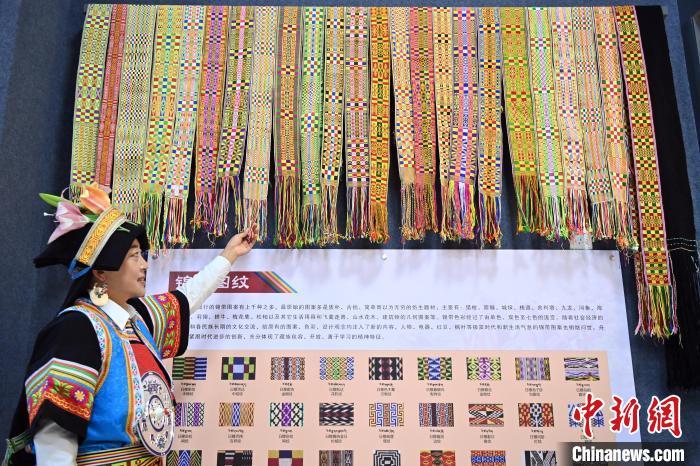 9月26日,甘肅省甘南藏族自治州舟曲縣,當(dāng)?shù)夭刈鍕D女展示紡織好的錦帶。錦帶是舟曲藏族婦女用以束腰、扎靴、攏發(fā)乃至點(diǎn)綴服飾的花帶子,艷麗多彩、圖案優(yōu)美。每逢吉慶節(jié)日,藏族婦女穿戴的華麗盛裝就需要少則五、六條,多則十幾條寬窄長(zhǎng)短相宜的錦帶來裝飾。據(jù)介紹,藏族織錦帶技藝歷史悠久,一千多年以前,古羌族和吐蕃已有了較發(fā)達(dá)的手工編織技術(shù),在艱難的生活條件下對(duì)服飾等生活用品除實(shí)用功能之外,已經(jīng)有了強(qiáng)烈的審美追求,是研究舟曲羌藏文化的“活化石”。中新社記者 九美旦增 攝