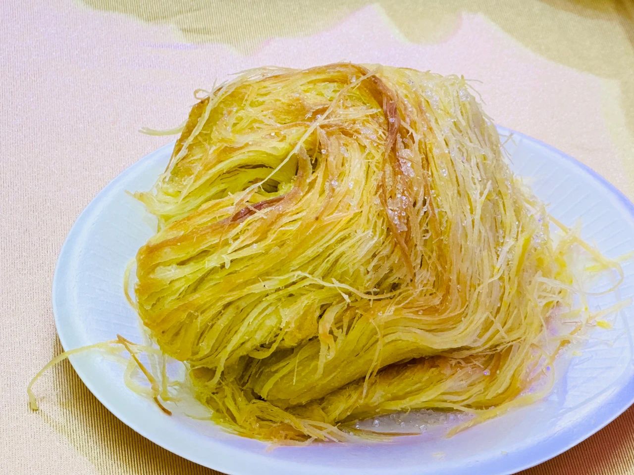 一窩絲的制作是一門精細(xì)的藝術(shù)。面粉、水、鹽和油巧妙混合,揉成光滑面團(tuán)后,反復(fù)地拉伸、對(duì)折,直至那面團(tuán)細(xì)如發(fā)絲,再盤成一團(tuán)放入烤箱中,逐漸變得金黃酥脆。吃起來,那口感是層層疊疊的酥,帶著淡淡的油香,每一根絲在齒間斷裂,釋放出獨(dú)特的風(fēng)味。
