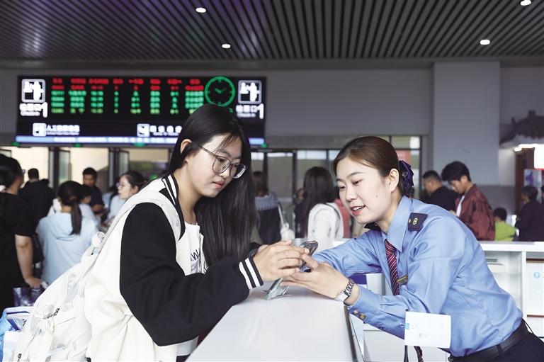 工作人員為旅客提供問詢服務(wù)
