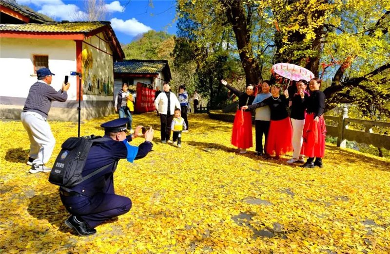 被秋色渲染的詩和遠方背后,“警察藍”早已與山水和諧同框。晨霧中,成縣公安的無人機如雄鷹掠過雞峰云海;金黃的稻田里,“駐村輔警”用鄉(xiāng)音化解著鄰里糾紛;徽縣嘉陵江畔,特警的身影在江風中堅定挺立。這些畫面共同繪就了一幅新時代的“警旅融合圖”。