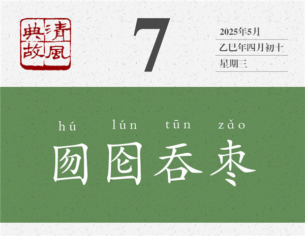 囫圇,就是完完整整的意思;把棗子完完整整地吞咽下去,就叫“囫圇吞棗”。我們常說(shuō)的“囫圇吞棗”,原來(lái)是一個(gè)傻子自作聰明的“發(fā)明”。雖然完完整整地吞下了一個(gè)棗子,但嚼也不嚼,連棗核也不用吐,連棗子什么味道也不用嘗,直接就咽下去了,這是聰明之舉嗎?吃東西為什么要咀嚼,既是為了品嘗滋味、享受過(guò)程,也是為了更好地消化吸收、獲取營(yíng)養(yǎng)。后世即以“囫圇吞棗”為典,比喻學(xué)習(xí)或借鑒過(guò)程中的死記硬背、照本宣科現(xiàn)象??此茡?jù)為己有了,實(shí)則只是走了個(gè)過(guò)場(chǎng)而已。朱自清《論詩(shī)學(xué)門(mén)徑》:“一個(gè)高中文科的學(xué)生,與其囫圇吞棗或走馬看花地讀十部詩(shī)集,不如仔仔細(xì)細(xì)地背誦三百首詩(shī)。”
