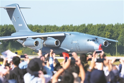 觀眾在現(xiàn)場拍攝運油-20A。新華社記者 許暢 攝
