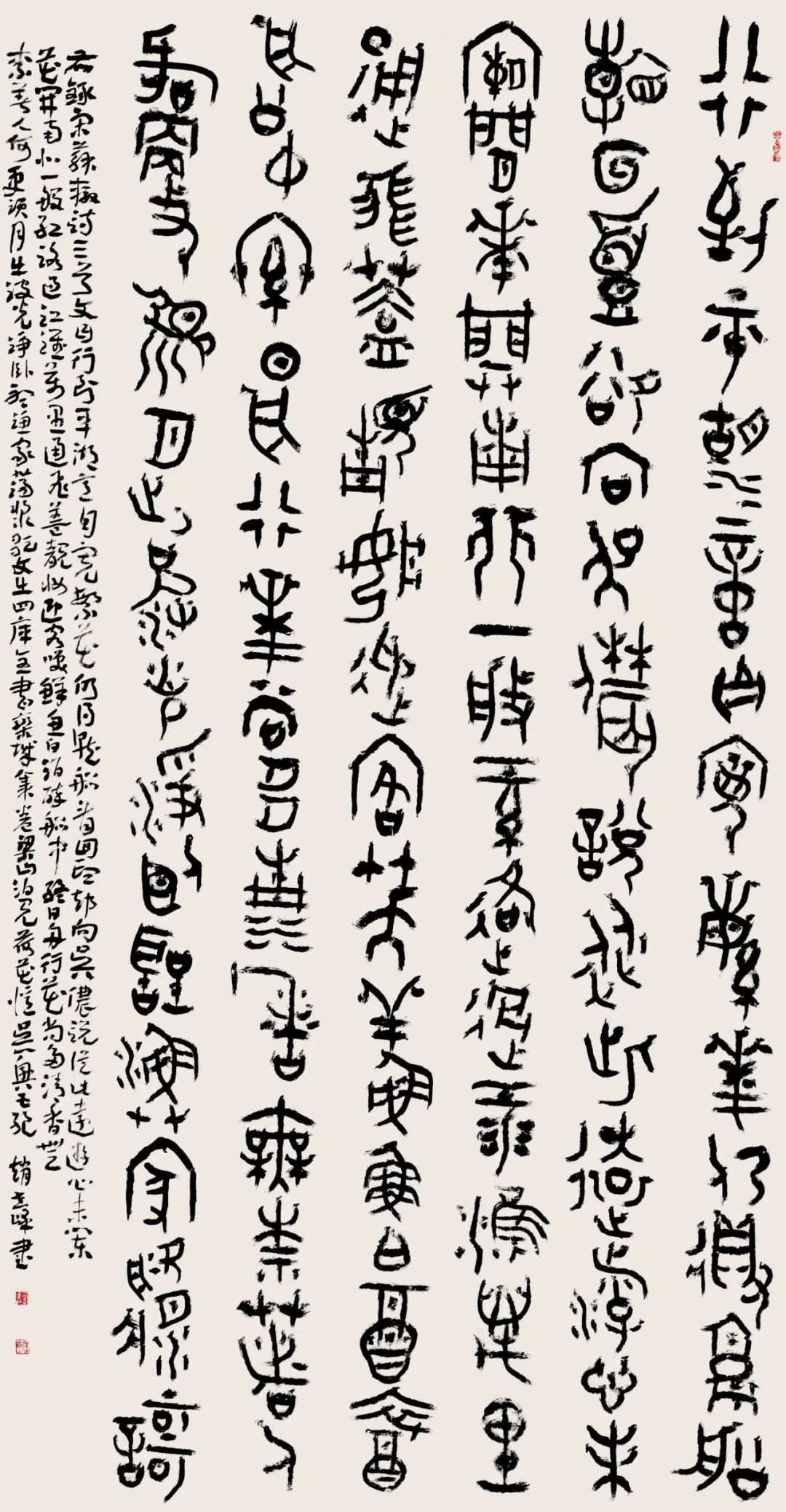 此次展覽展出的184件八尺大幅書(shū)法作品,主題鮮明,諸體兼?zhèn)?。五體占比平衡,一改過(guò)去篆書(shū)篆刻作品少、好作品更少的局面。書(shū)法家區(qū)別于他人的不同之處,在于書(shū)法家是用點(diǎn)畫(huà)結(jié)體和章法中的各種對(duì)比關(guān)系和形勢(shì)變化來(lái)觀(guān)察世界、認(rèn)識(shí)世界和表現(xiàn)世界的,倡導(dǎo)注重日常書(shū)寫(xiě),將書(shū)法創(chuàng)作變成日常的書(shū)寫(xiě)活動(dòng),變成生活的一部分,不為創(chuàng)作而創(chuàng)作。入選的作者以70后、80后、90后為主體,展現(xiàn)出甘肅書(shū)法的源遠(yuǎn)流長(zhǎng)、青藍(lán)相繼、賡續(xù)文脈。