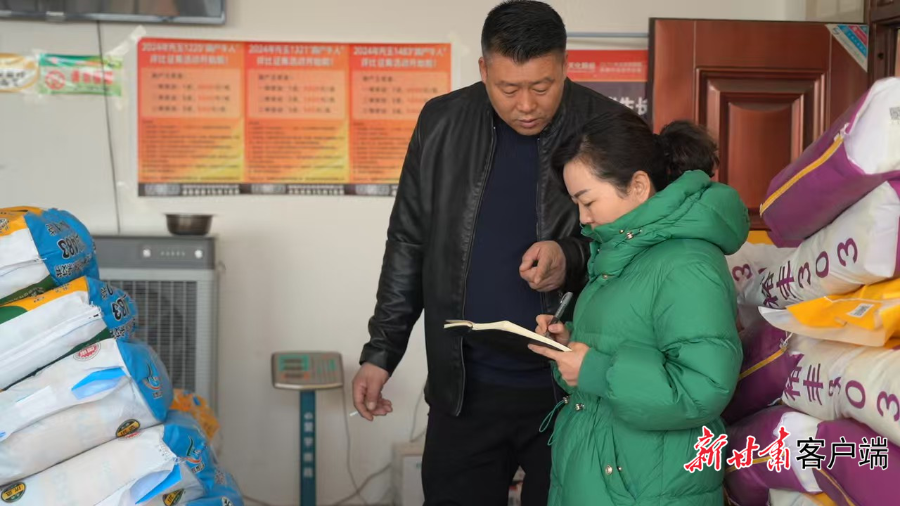 白曉艷走訪肅南縣糧食種植區(qū)的農(nóng)資店與倉(cāng)庫(kù)。