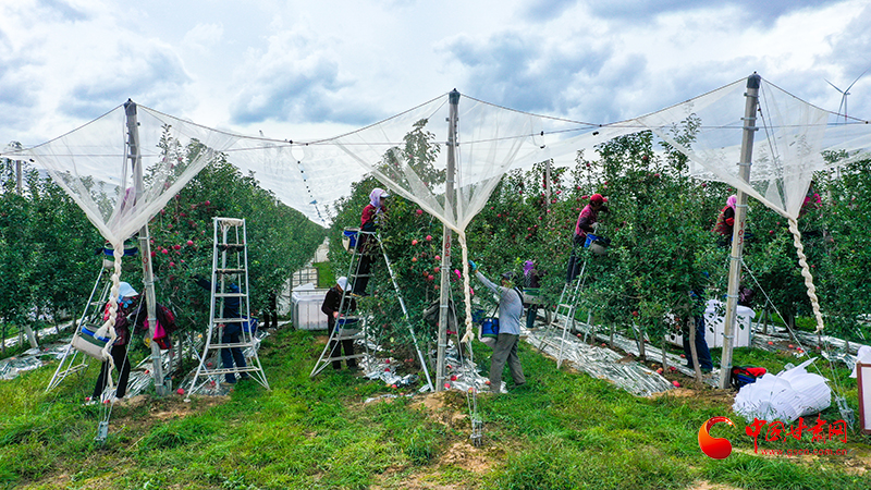 走進果園,連片果樹郁郁蔥蔥,一個個果形飽滿、色澤鮮亮的“九月奇跡”蘋果沉甸甸掛滿枝頭,果農(nóng)們身背果簍、手持果剪,熟練又小心翼翼地采摘成熟的果實,臉上洋溢著豐收的喜悅,園內(nèi)處處是繁忙又熱鬧的豐收圖景。