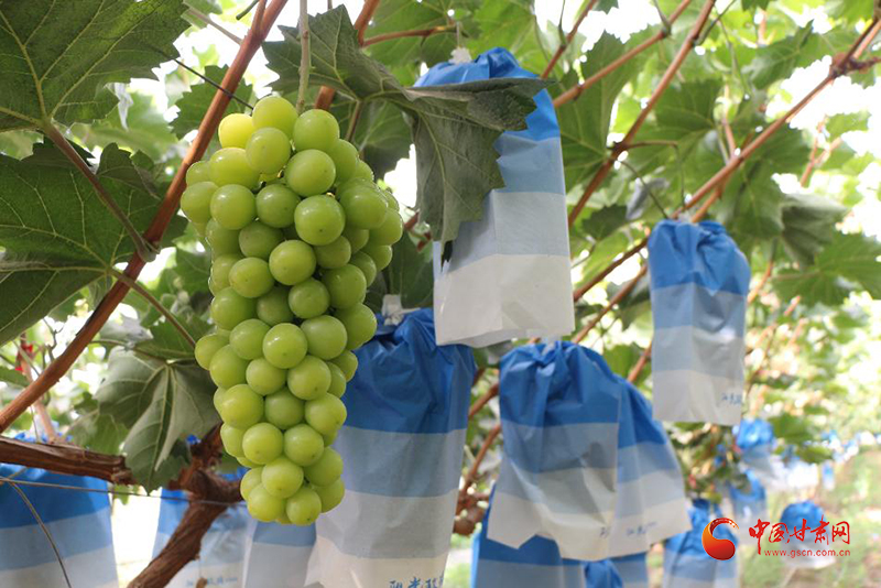 陽(yáng)光染就青璃串,秋露凝成琥珀香。近日,高臺(tái)縣南華鎮(zhèn)智號(hào)村“陽(yáng)光玫瑰”葡萄陸續(xù)成熟,爭(zhēng)“鮮”上市。走進(jìn)葡萄種植大棚,藍(lán)白漸變的套袋既藏著果實(shí)悄悄蛻變的痕跡,也為“陽(yáng)光玫瑰”附上了一層朦朧的神秘感,讓人站在葡萄藤下忍不住想湊近,看看袋里正醞釀著怎樣的青綠與香甜。