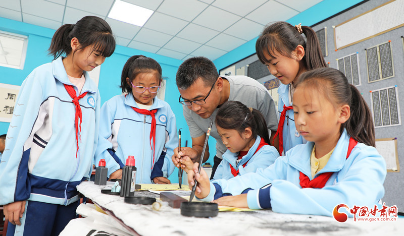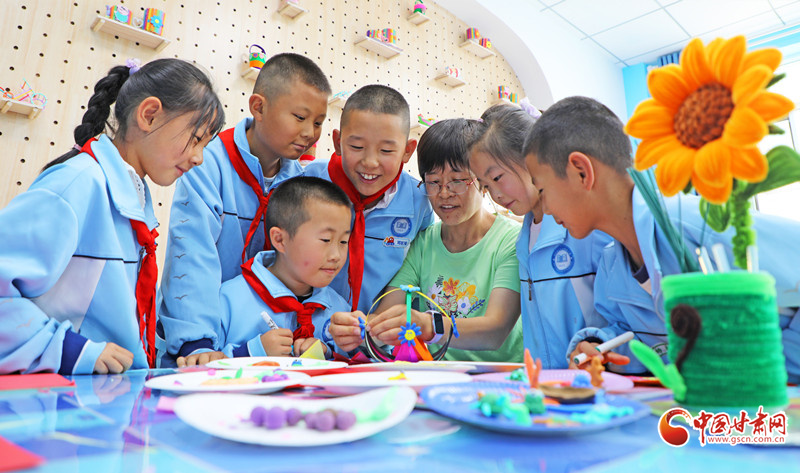 9月2日,在民樂縣文化產業(yè)園小學,學生在老師指導下開展豐富多彩的社團活動。