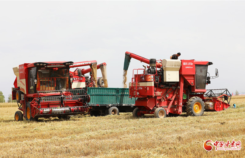 8月11日,在民樂縣民聯(lián)鎮(zhèn)顧寨村千畝連片小麥種植基地,農(nóng)機(jī)手們正在駕駛聯(lián)合收割機(jī)穿梭往返在麥田之中搶收小麥,確保小麥顆粒歸倉。