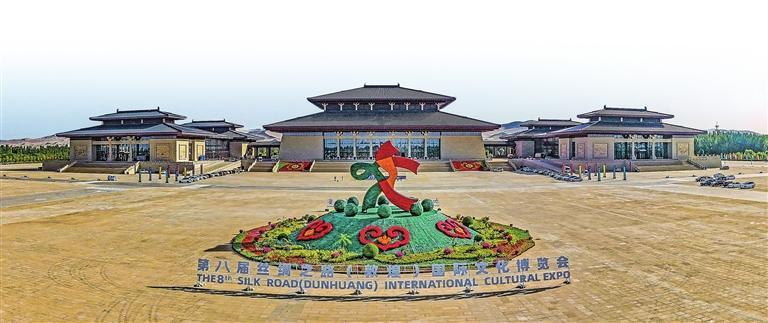 第八屆絲綢之路(敦煌)國際文化博覽會準備就緒,主場館裝扮一新。 田蹊