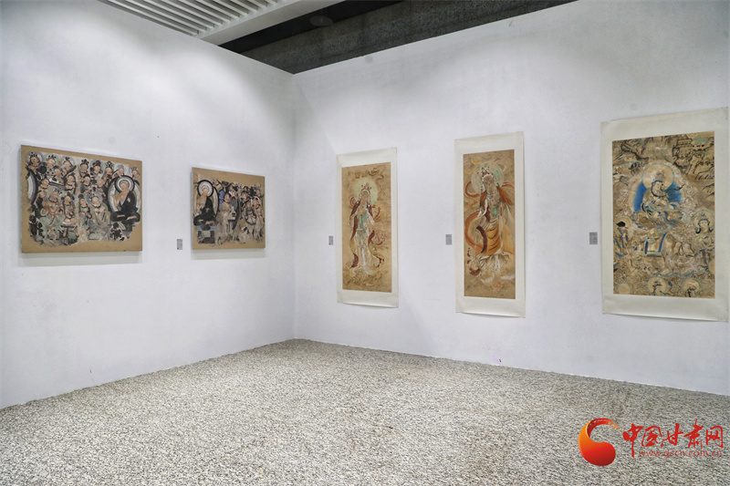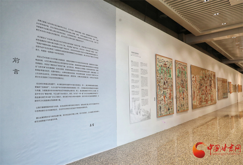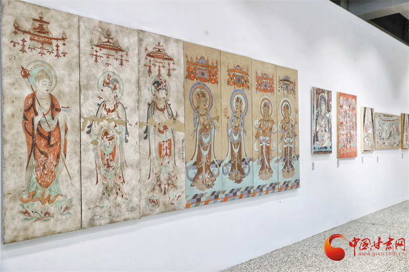 第八屆敦煌文博會“絲路華彩·盛世華章——敦煌及絲路沿線地區(qū)石窟寺壁畫藝術(shù)傳播與展示”專展,西北師范大學敦煌學院馬寶團隊帶來了絲路沿線34個石窟寺壁畫臨摹作品,以及流失海外的壁畫精品臨摹作品,系統(tǒng)梳理了以河西走廊石窟群為代表的絲綢之路沿線石窟壁畫藝術(shù),讓全世界的觀眾可以更直接參觀熠熠生輝的絲綢之路經(jīng)典壁畫。