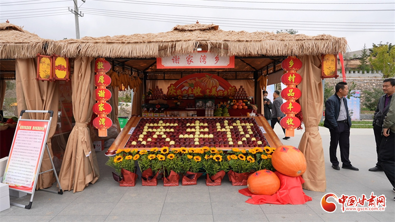 活動(dòng)主會(huì)場熱鬧非凡,歌舞節(jié)目輪番上演,濃郁的鄉(xiāng)土氣息撲面而來,生動(dòng)傳遞出農(nóng)民群眾豐收的喜悅。主會(huì)場兩側(cè)20座農(nóng)產(chǎn)品展示展銷亭整齊排列,辣椒、花椒、蘋果等特色農(nóng)產(chǎn)品及“甘味”品牌精品集中亮相,吸引了不少群眾駐足。