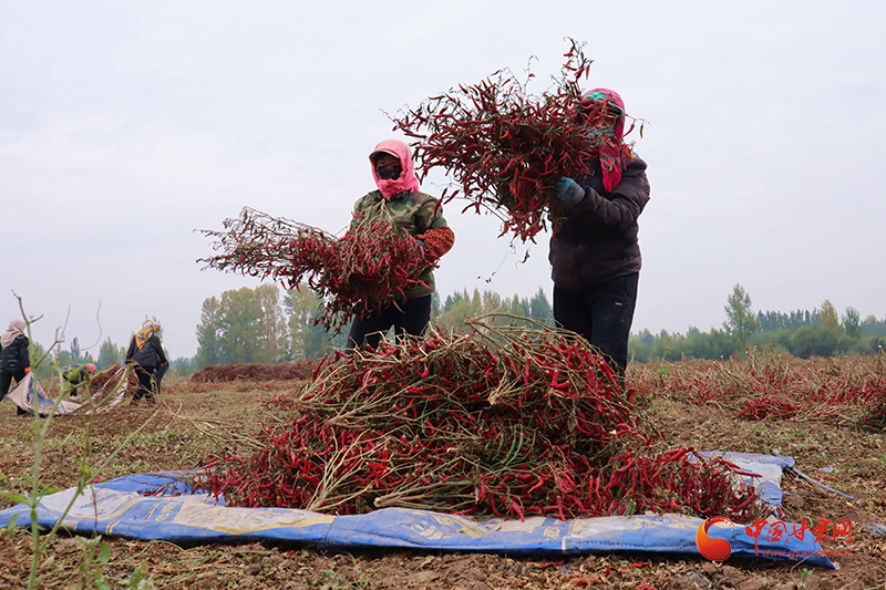 近日,走進(jìn)臨澤縣蓼泉鎮(zhèn)墩子村的辣椒種植基地,一壟壟辣椒長(zhǎng)勢(shì)旺盛,飽滿的辣椒掛滿枝頭。田間地頭,農(nóng)戶們正忙著將砍下的帶枝辣椒集中堆放,有條不紊地進(jìn)行去枝處理,一派豐收忙碌的景象。
