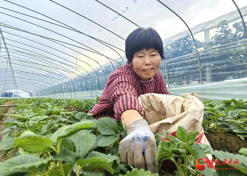 金秋時(shí)節(jié),隴南市成縣店村鎮(zhèn)新村的草莓種植基地里,工人俯身田間,正忙著為草莓苗除草、疏葉,一株株翠綠的草莓苗在溫暖的塑料大棚里茁壯成長,預(yù)示著來年又將是一個(gè)豐收季。這背后是店村鎮(zhèn)以“黨支部+合作社+農(nóng)戶”模式發(fā)展特色產(chǎn)業(yè),將“小草莓”打造成富民興村“大產(chǎn)業(yè)”的生動(dòng)實(shí)踐。