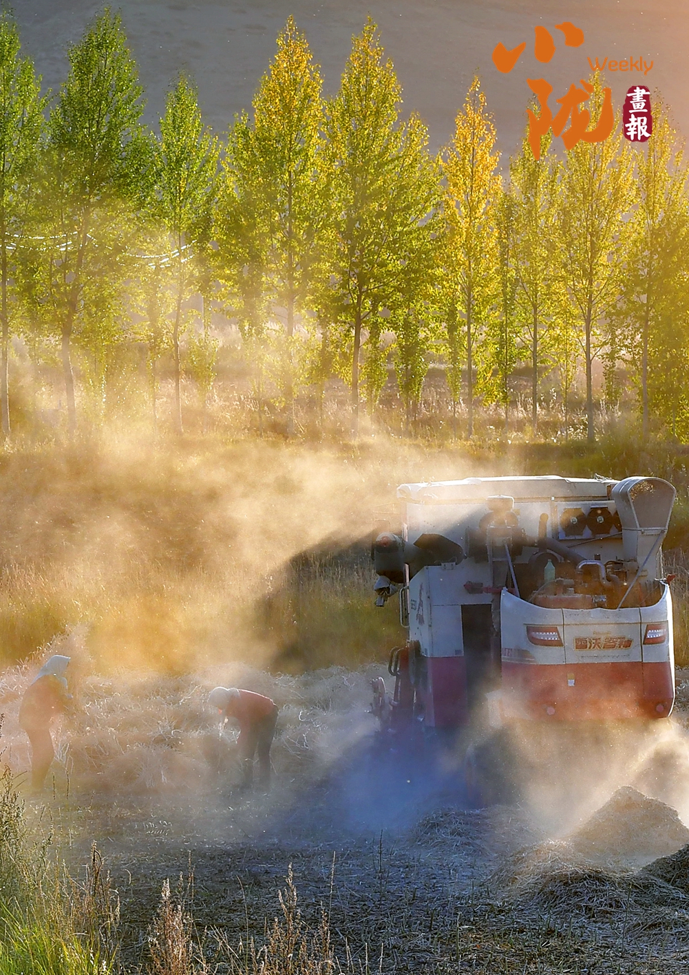 在秋風的洗禮下,田野間一臺臺收割機來回作業(yè),機器的轟鳴聲、農(nóng)民們的歡笑聲回蕩在農(nóng)田上空。他們在這片土地上播撒希望,耕耘夢想,用那雙粗糙而有力的雙手,書寫著屬于他們自己的豐收篇章。