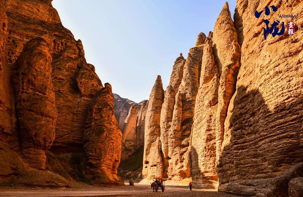 峽谷蜿蜒曲折宛如蛇行,千萬年風化雨蝕形成的石柱石筍突兀而起如“黃泥盆景”,那一根根石柱表面粗糲線條遒勁,巍峨挺立,高度從80到100米不等,甚至有些高達200多米,有的像是被歲月打磨的利刃,有的粗壯敦實,如同頂天立地的巨人,守護著這片古老的土地。