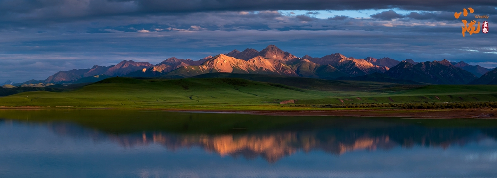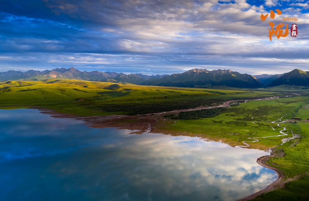 站在祁連山主峰冷龍嶺北坡瞭望,廣袤無垠的草原一片金黃,遠方是連綿的祁連山,眼前是鸞鳥湖,遠山近水,充滿了秋色的誘惑。