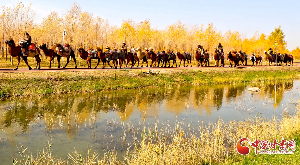 金秋十月,張掖市甘州區(qū)黑河林場萬畝胡楊林迎來流金季節(jié)。10月15日,一支駝隊行進其間,領(lǐng)略這最美的時光。這片昔日亂石林立、滿目瘡痍的黑河亂石灘,如今已成為6萬畝的城市森林,游人、駝隊行進其中,與金色林海共同構(gòu)成了一幅動人的生態(tài)畫卷。