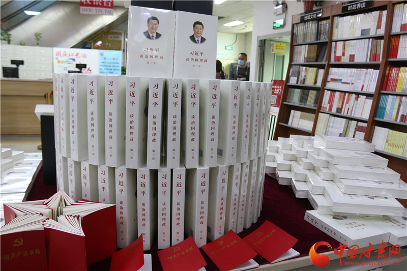 中國(guó)甘肅網(wǎng)7月8日訊 (本網(wǎng)記者 張?zhí)m琴 文/圖)記者從甘肅省新華書店了解到,隨著《習(xí)近平談治國(guó)理政》第三卷開始在全國(guó)發(fā)行,7月6日我省首批到貨10萬(wàn)冊(cè),即日起在全省88家新華書店門店發(fā)行,并設(shè)置專臺(tái)陳列,重點(diǎn)展示銷售,讀者反響熱烈,目前已銷售5200余冊(cè)。