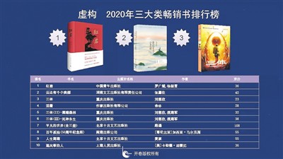 同時,2020年整體市場缺乏亮眼的暢銷書,銷量百萬以上的圖書品種由2019年的49種下降至2020年的24種,榜單仍以經(jīng)典常銷圖書和暢銷系列為主?!都t巖》成為虛構(gòu)類第1名,同時也是總榜榜首。《云邊有個小賣部》和《三體》分別位列第2名和第3名。非常眼熟是不是?在非虛構(gòu)圖書中,引進的《你當(dāng)像鳥飛往你的山》排名第一。少兒類第1名《夏洛的網(wǎng)》是2014年8月上市的,截至目前該書上榜已有133次。少兒榜和虛構(gòu)榜沒有新書進入2020年榜單前10,非虛構(gòu)只有《國家安全知識百問》1本進入。就是說,整個零售市場的大半江山都依賴于老書。