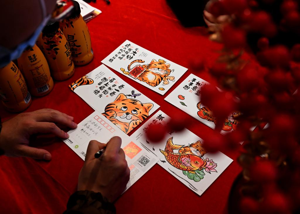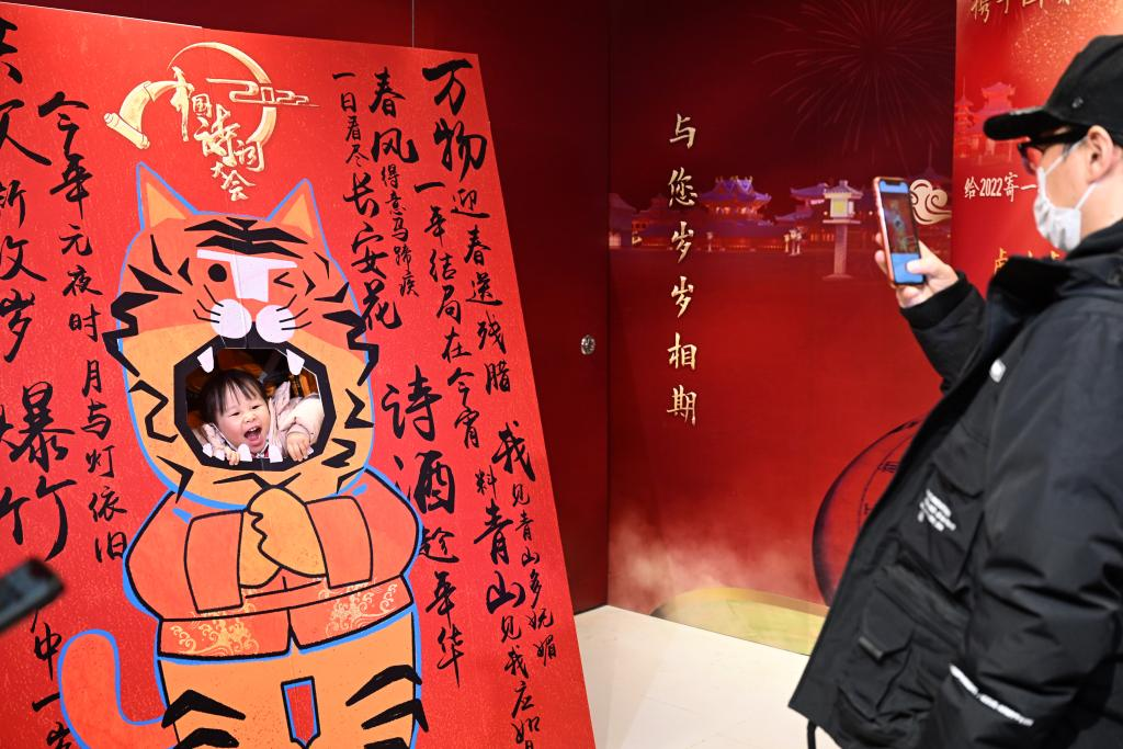 春節(jié)假期,作為文化節(jié)目《2022中國詩詞大會》的線下活動,詩詞市集在北京國貿(mào)商城舉行。活動邀請市民寫下一句詩,給2022年寄出一張?jiān)娫~明信片,帶動詩歌熱潮,推動詩詞文化走入百姓家。