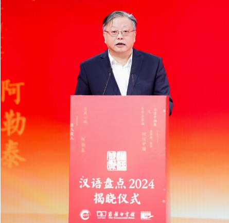商務(wù)印書(shū)館黨委書(shū)記、執(zhí)行董事顧青在“漢語(yǔ)盤(pán)點(diǎn)2024”年度字詞揭曉儀式上致辭。新華網(wǎng) 發(fā)