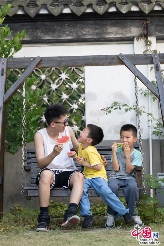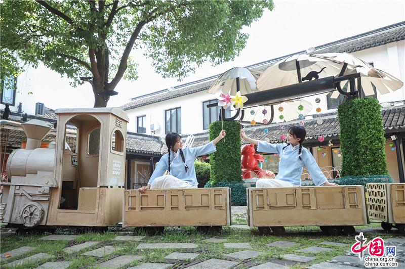 夏日遲遲至,古鎮(zhèn)緩緩行。坐一趟手搖船,穿行在23°的水巷,看陽光透過樹影落在水面上的斑駁,聽搖櫓聲聲撥動(dòng)碧水的悠然,悄然經(jīng)過匆匆那年。赴一場(chǎng)紙箱王之約,穿梭在紙藝王國,吃一頓盈滿時(shí)光的紙上美食。坐上紙做的小火車放飛夢(mèng)想,在紙箱王古郵局描繪出未來的藍(lán)圖。行走在貞豐文化街上,看貞豐十二坊的匠人匠心,觀水鄉(xiāng)周莊的人間煙火。走累了便去蘇繡藝舍感受蘇繡的獨(dú)特魅力,到爐韻沉香研習(xí)香道茶藝……一盞清茶一爐香,一衣帶水歸故鄉(xiāng)。