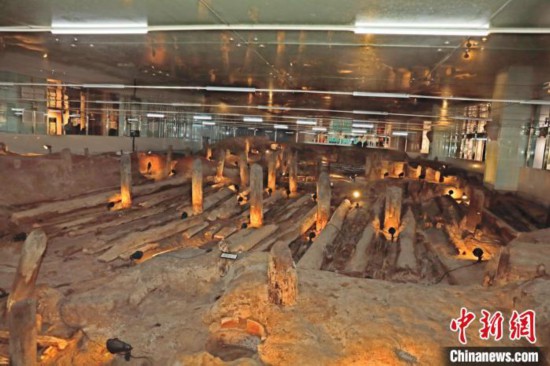 位于廣州市越秀區(qū)光明廣場的南越國木構(gòu)水閘遺址完成展陳提升后,于18日重新向公眾開放。