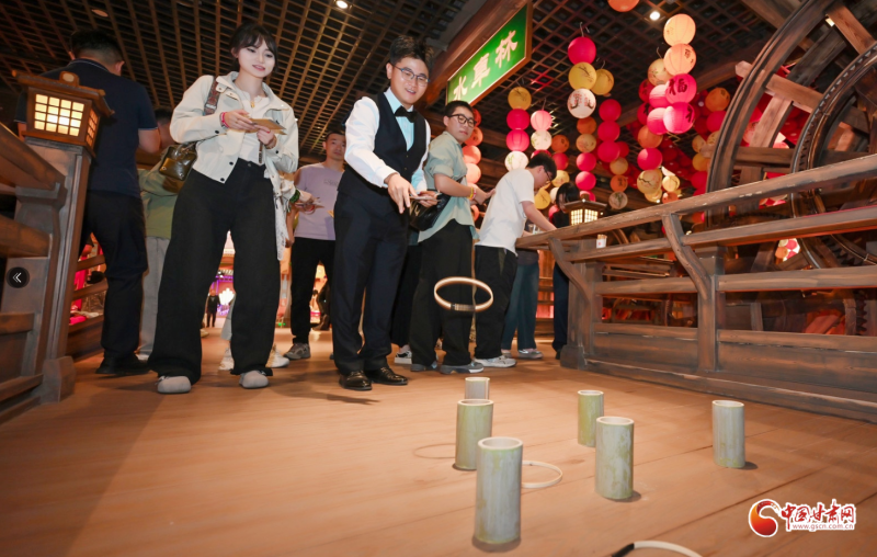 活動中,青年男女走進穿越之門,以啟緣照定格初見,持速配卡尋覓命定搭檔。詩板亭里飛花令對決顯才情,月老樹下合作套圈沖擊榜一,龍門客棧內演繹經典愛情電影橋段,良緣閣中以墨會友共書對聯(lián),終局挑戰(zhàn)“你來比劃我來猜”更是妙趣橫生,眾人在解鎖甜蜜過節(jié)新方式的同時,感受中國傳統(tǒng)文化的魅力。