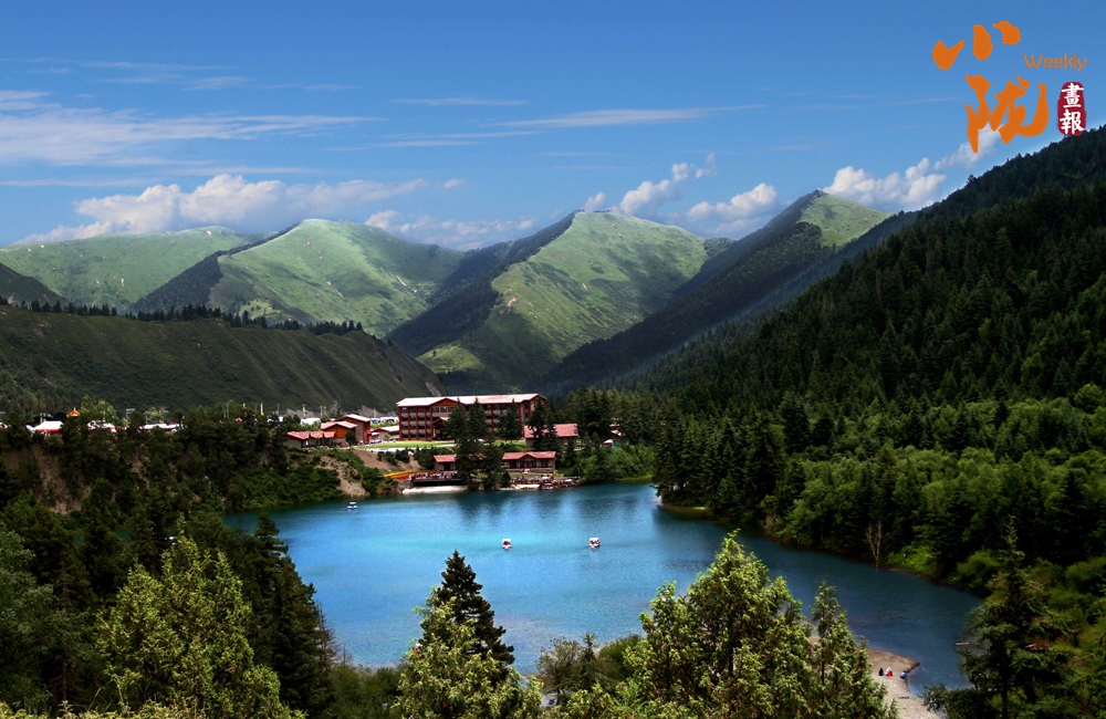 圖杰拉措(漢語意為觀音湖)寧?kù)o地臥在群山的懷抱中,湖面平靜如鏡,似一塊無瑕而絢麗的翡翠,倒映著奇石雄峰、蒼松翠柏??粗娨猱嬀戆愕牧鹆Ш谒{(lán)天白云的映襯下絢麗奪目,心中頓時(shí)愜意舒爽。